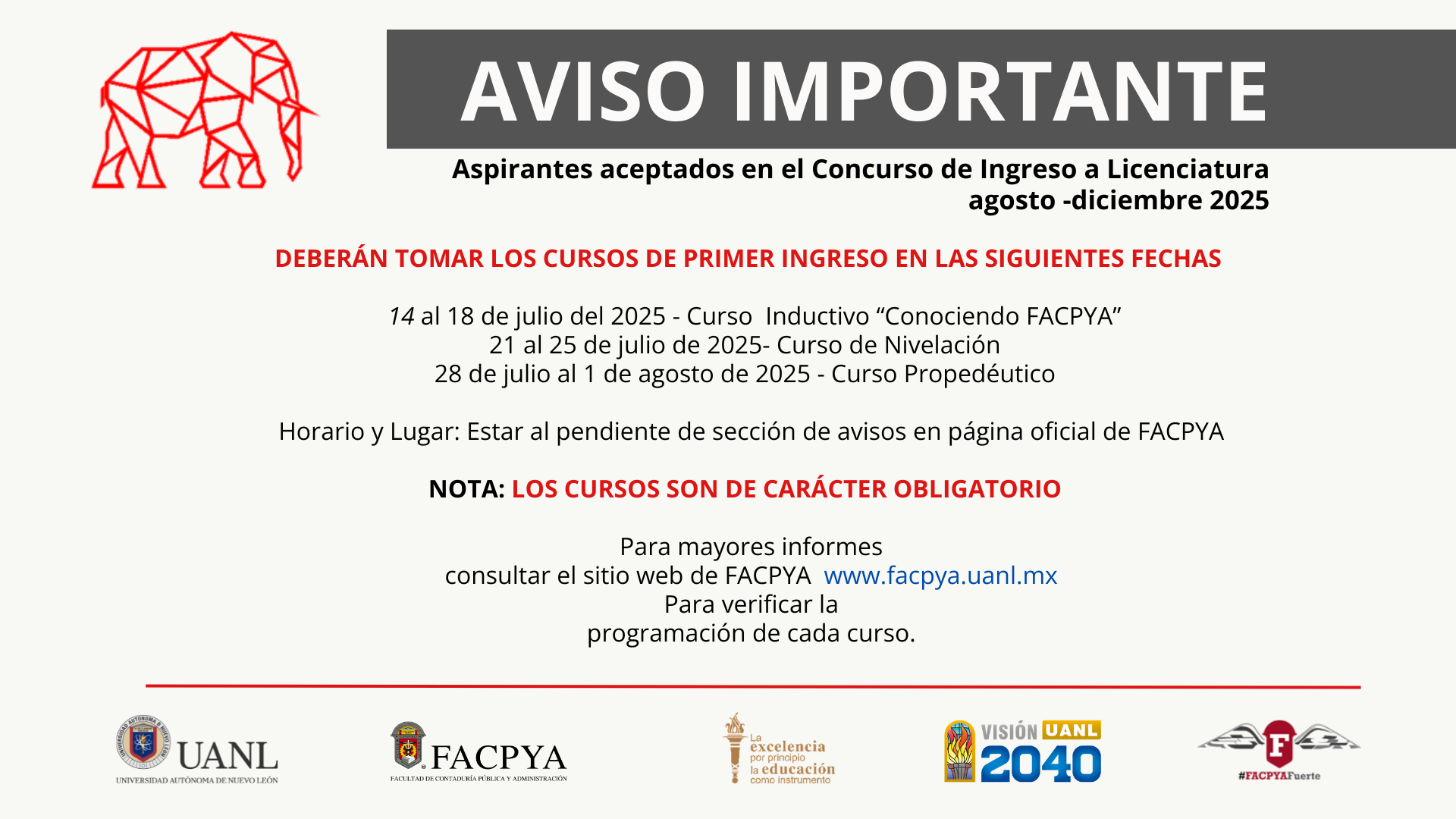 Dirigido a todos los aspirantes que sean aceptados en el concurso de ingreso a licenciatura agosto – diciembre 2025 la Facultad de Contaduría Pública y Administración los invita a consultar toda la información referente a los cursos de primer ingreso. Toda la información se encuentra en el apartado “Documentos relacionados”.
