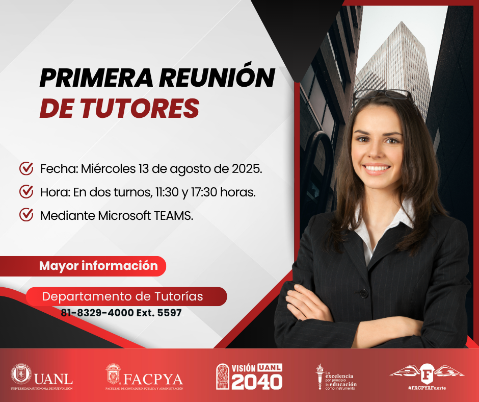 La Faculta de Contaduría Pública y Administración invita a la primera reunión de tutores correspondiente al semestre agosto – diciembre 2025.