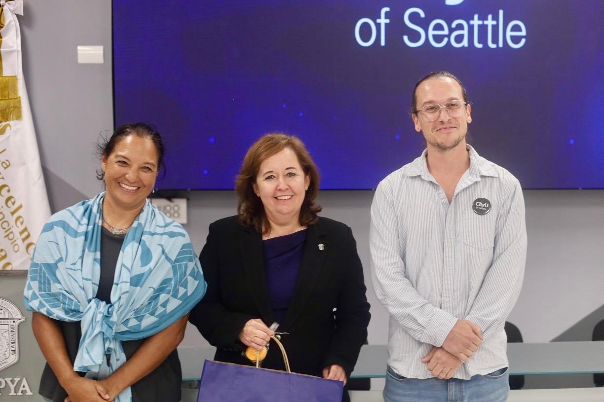 La velada contó con la participación de la Dra. Melissa Mecham, vicerrectora de City University of Seattle, junto con profesores de ambas instituciones, generando espacios de diálogo directo, proyecciones audiovisuales y dinámicas de networking que permitieron a los asistentes conocer experiencias internacionales de primera mano.