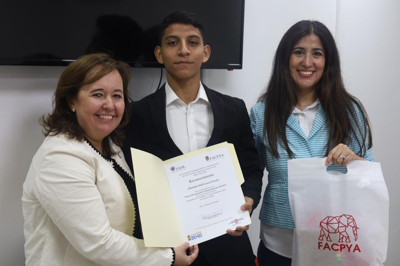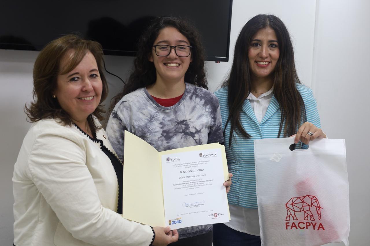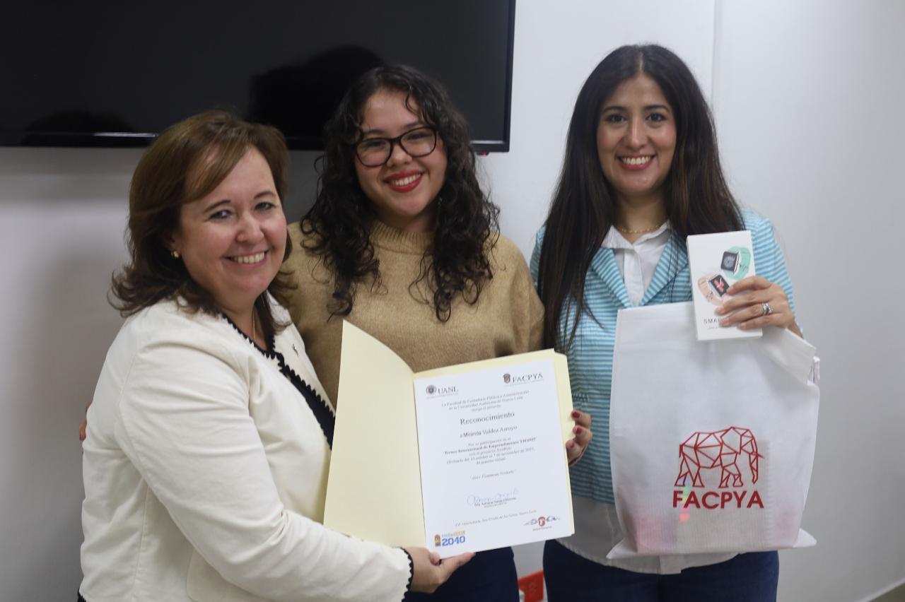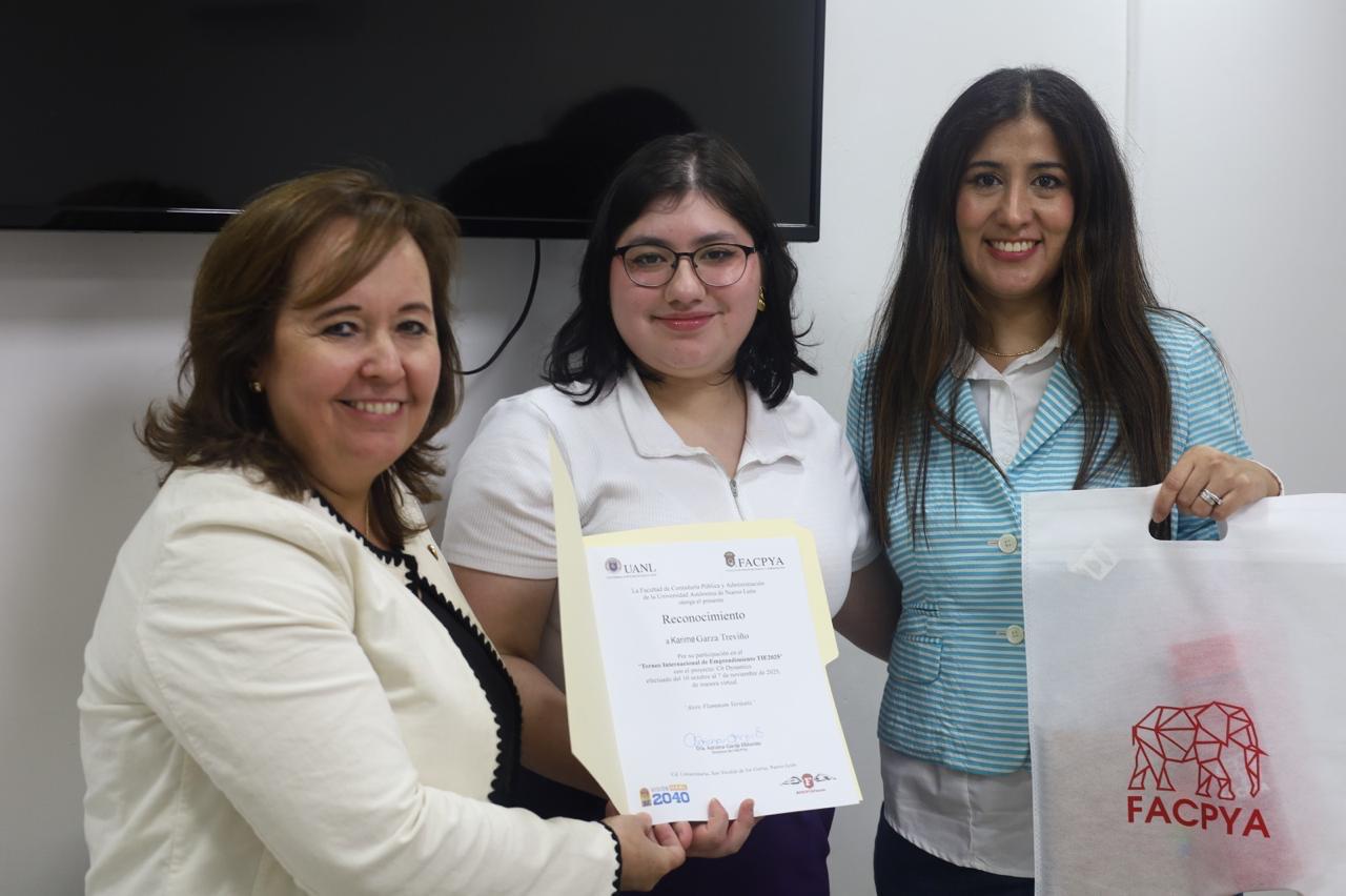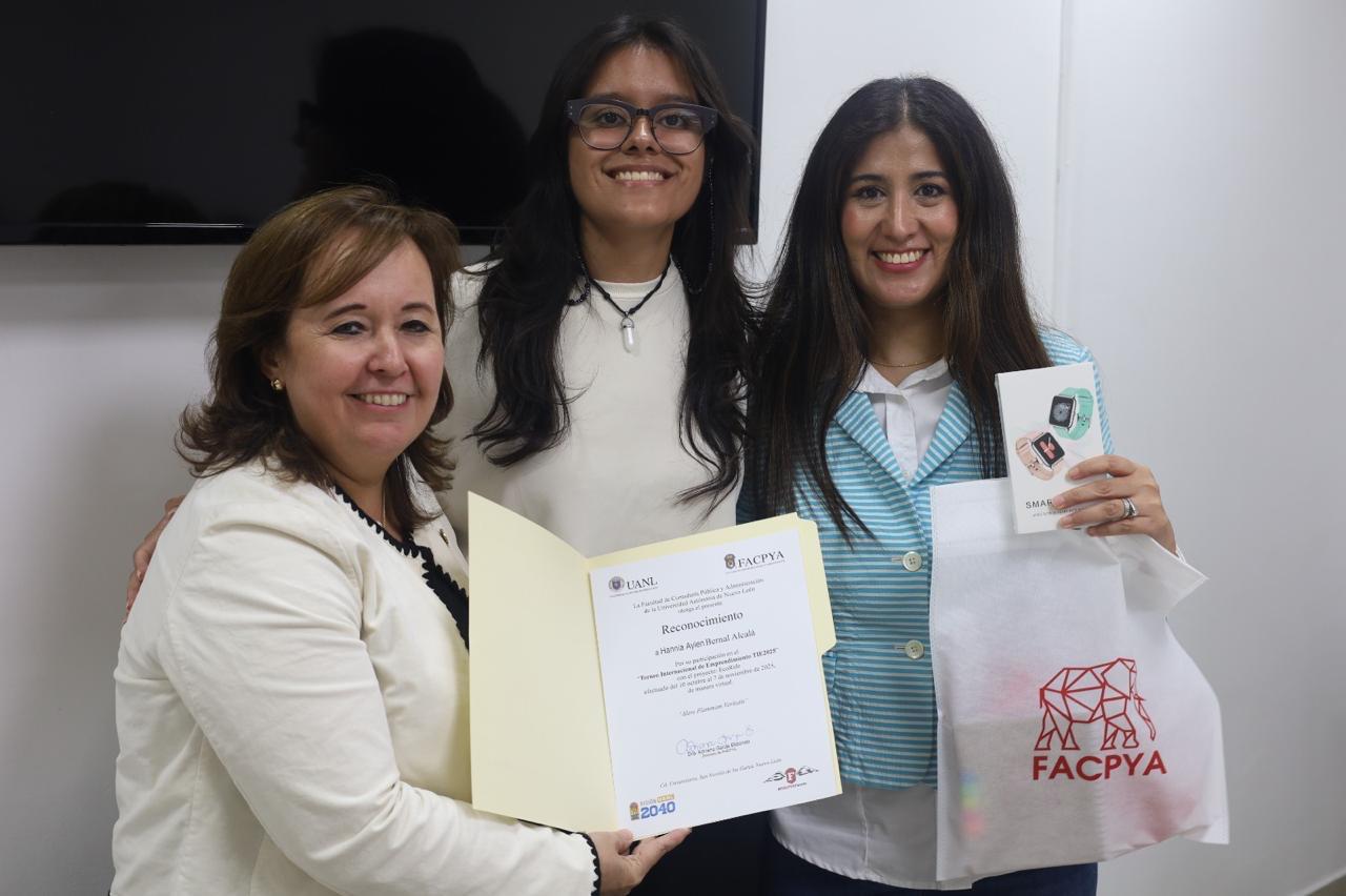 La entrega de reconocimientos se llevó a cabo el miércoles 27 de noviembre de 2025 en la Sala CONOCER de FACPYA, con la presencia de la Dra. Adriana Garza Elizondo, directora de la Facultad, quien hizo entrega de los reconocimientos a los siguientes estudiantes: