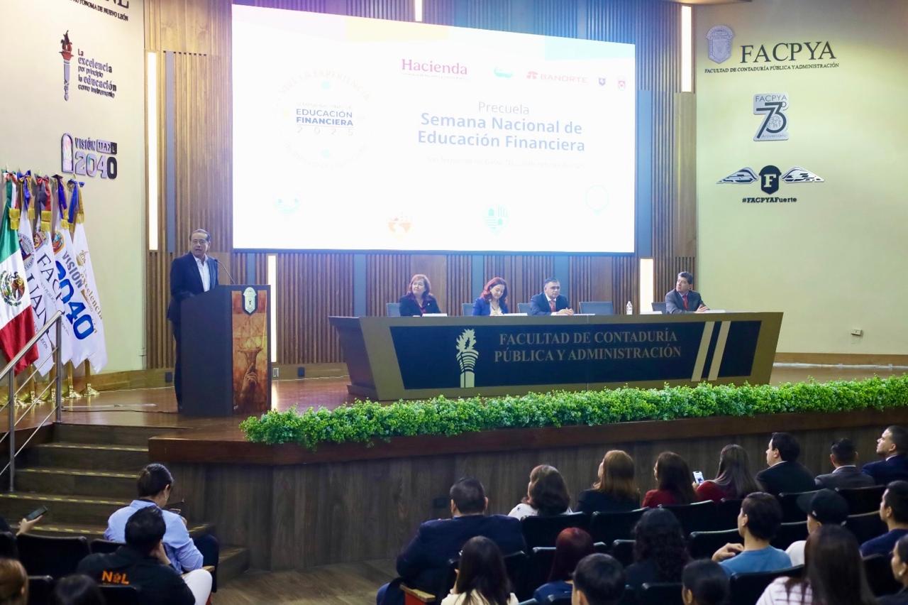 La Facultad de Contaduría Pública y Administración de la Universidad Autónoma de Nuevo León fue sede de la ceremonia de inauguración de la Semana Nacional de Educación Financiera 2025, evento que reunió a destacadas autoridades estatales, federales y académicas.