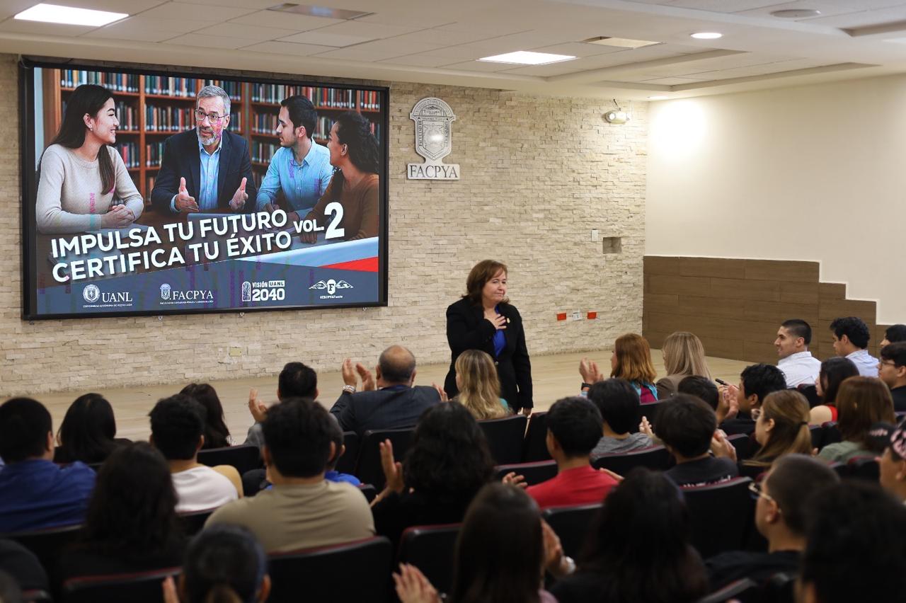 La Facultad de Contaduría Pública y Administración de la Universidad Autónoma de Nuevo León llevó a cabo la conferencia magistral “Impulsa tu futuro, certifica tu éxito – Volumen 2/2025”, un evento estratégico de dos días diseñado para acercar a la comunidad universitaria con las principales empresas certificadoras a nivel internacional.