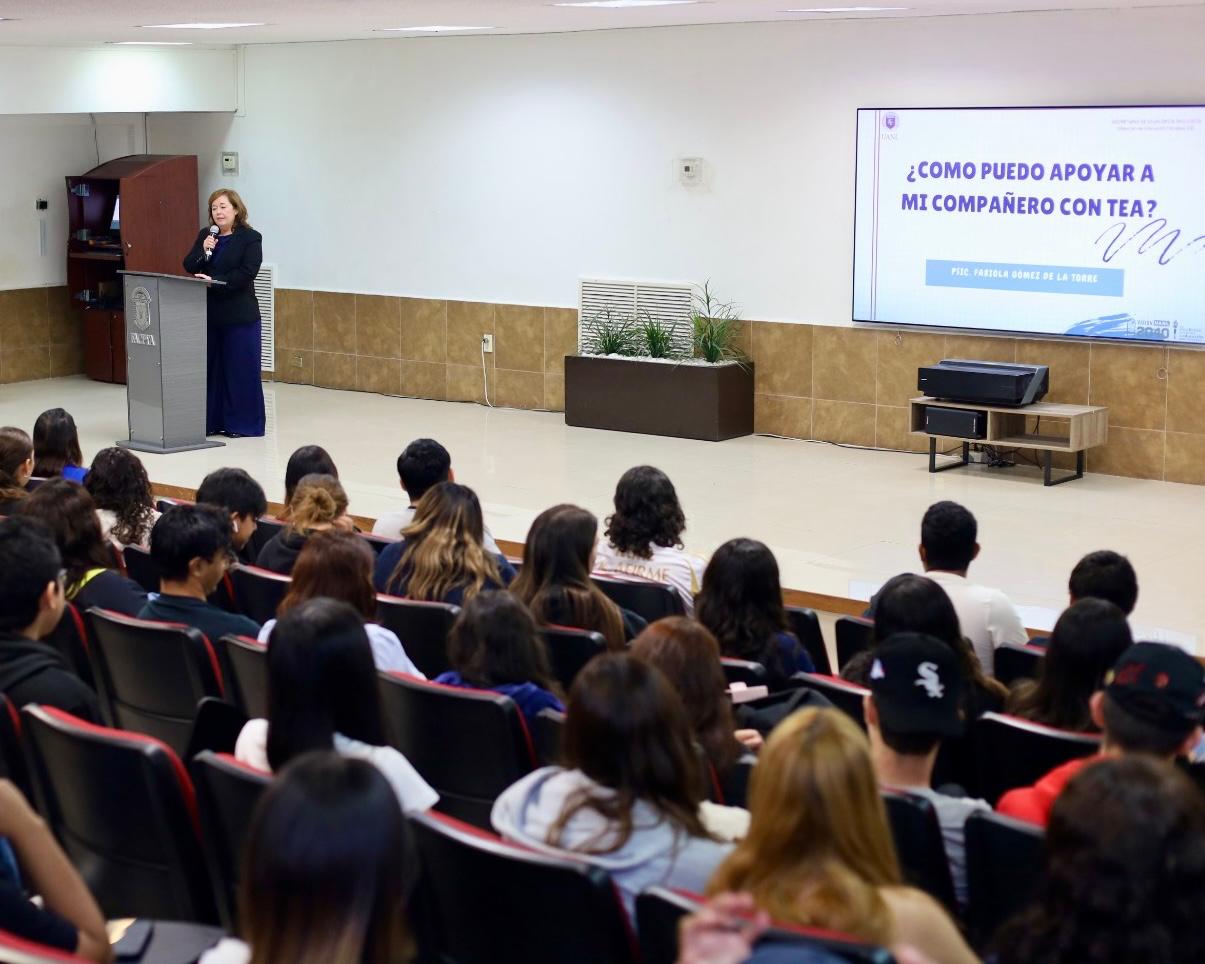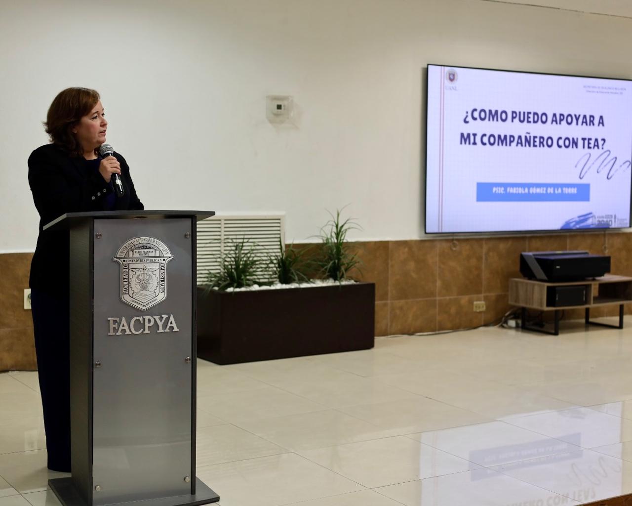 La Lic. Fabiola Gómez de la Torre impartió la conferencia, compartiendo su experiencia y conocimientos sobre el TEA. La Dra. Adriana Garza Elizondo, directora de FACPYA, destacó la importancia de promover espacios inclusivos en la comunidad académica.