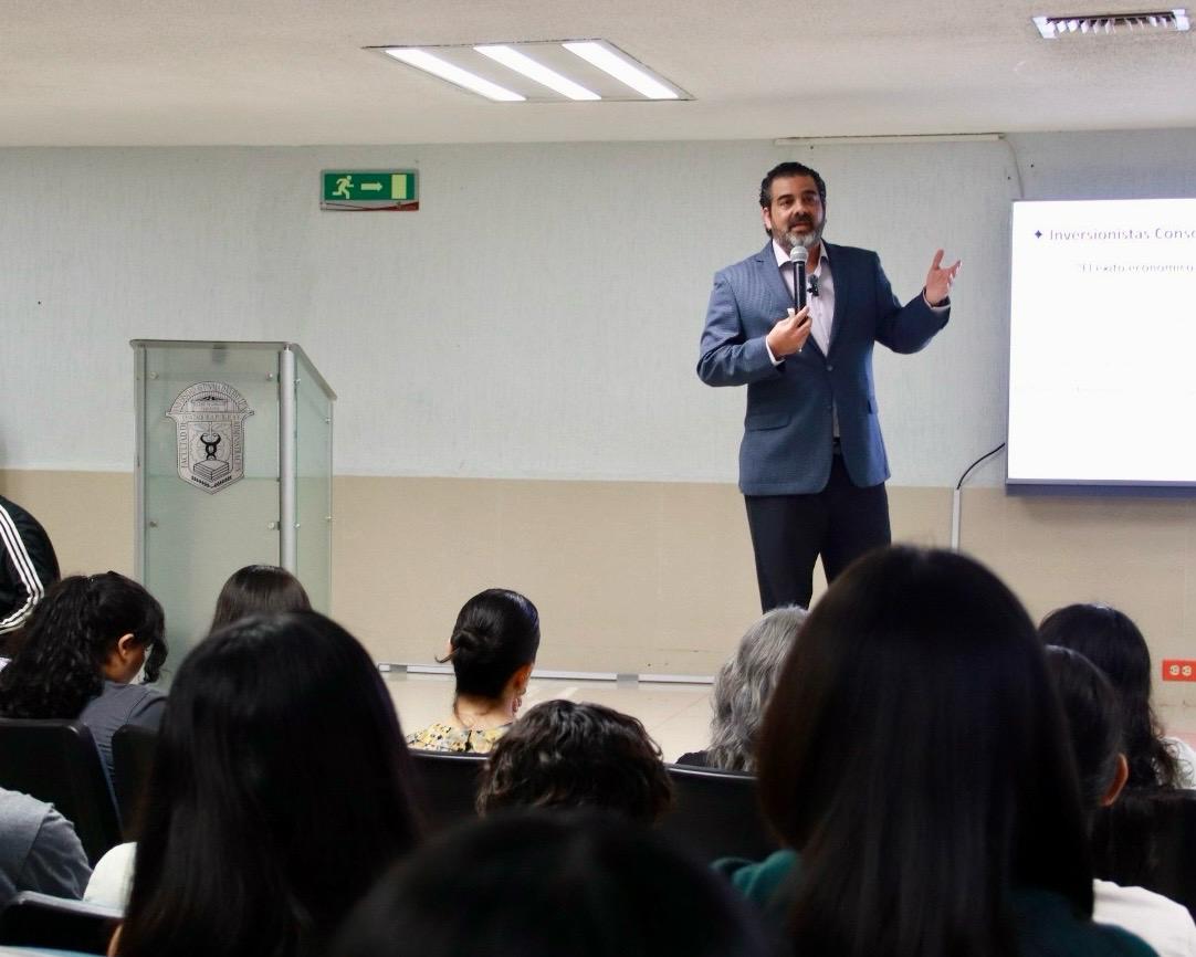 La ponencia estuvo a cargo del M.A. Rubén Galván Sampayo, quien compartió herramientas prácticas para integrar la conciencia personal con las decisiones de inversión y manejo financiero.