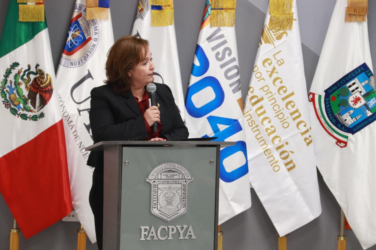 El presidium estuvo integrado por la Dra. Adriana Garza Elizondo, directora de FACPYA; el Lic. David de la Peña Marroquín, presidente municipal de Santiago, Nuevo León; el Lic. José Gerardo Contreras Monsiváis, secretario de Administración de Santiago; y la Dra. Adriana Segovia Romo, secretaria de Vinculación FACPYA.
